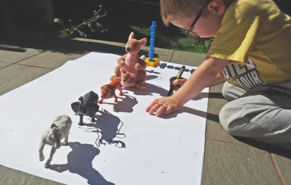 Słoneczka odrysują cienie swoich ulubionych zabawek.